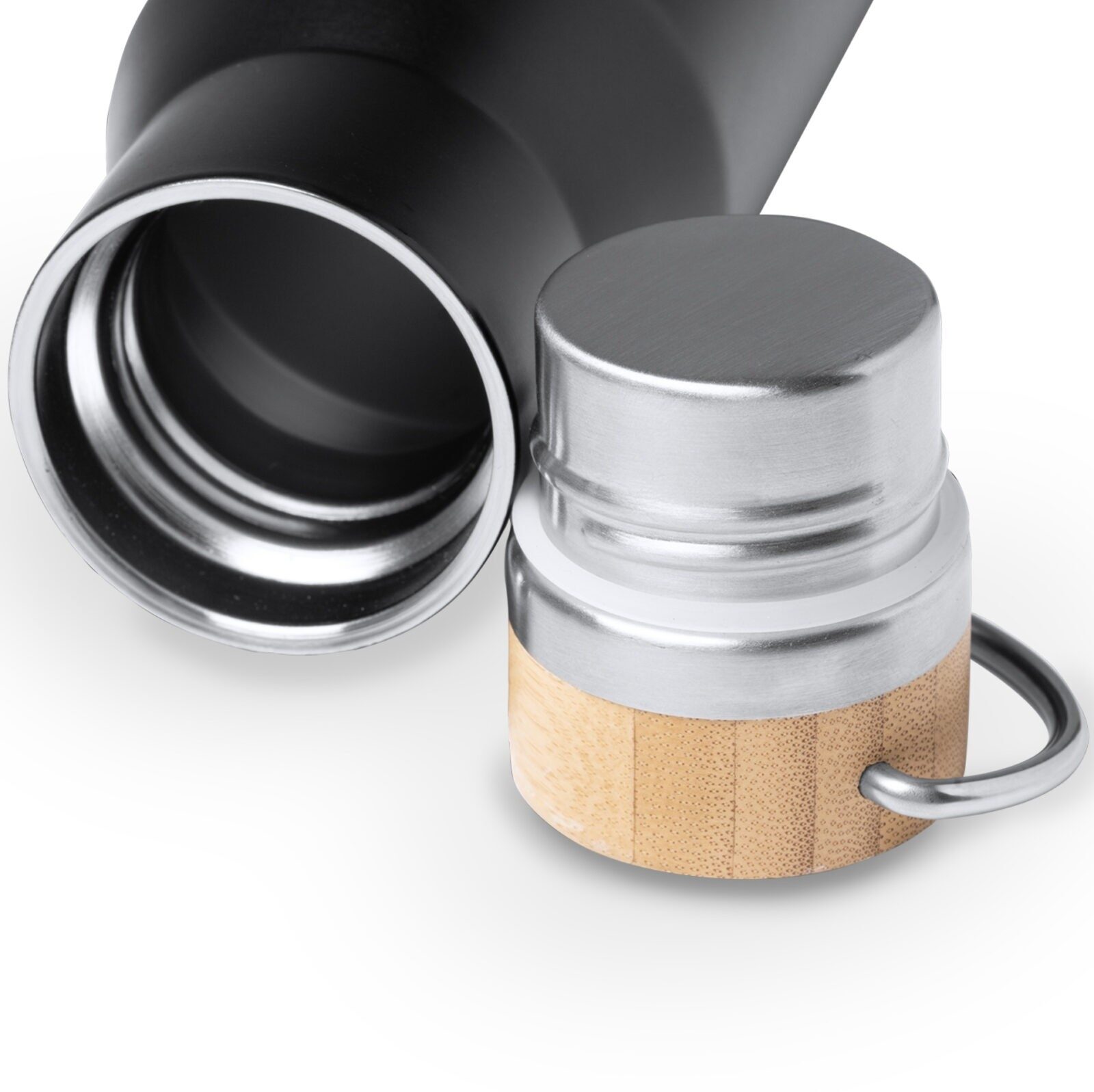Recycled Stainless with Double Wall, Bamboo Lid and 550ml capacity, ready to be screen printed or engraved.