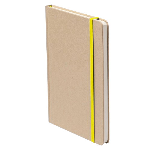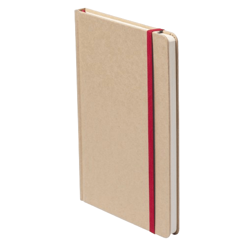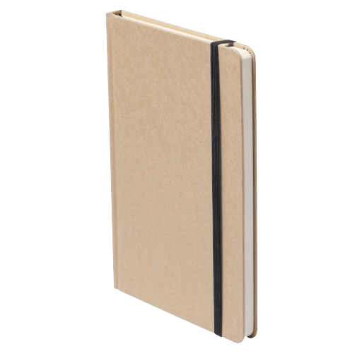 Recycled Kraft Hardcover Notebook with coloured elastic closure. 100 Blank Sheets of paper are provided in this recycled notebook.