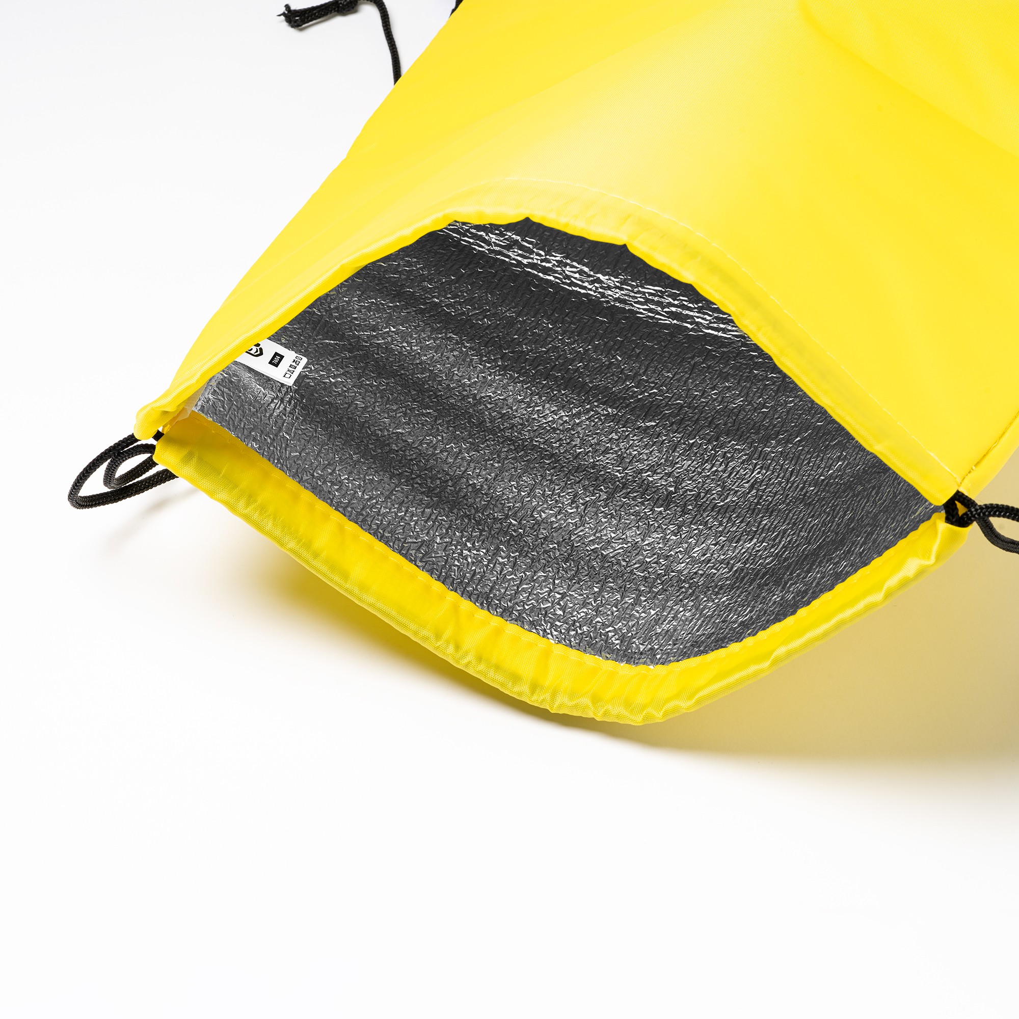 Cooler drawstring bag with isothermal aluminium lining. Shell in 210D polyester.