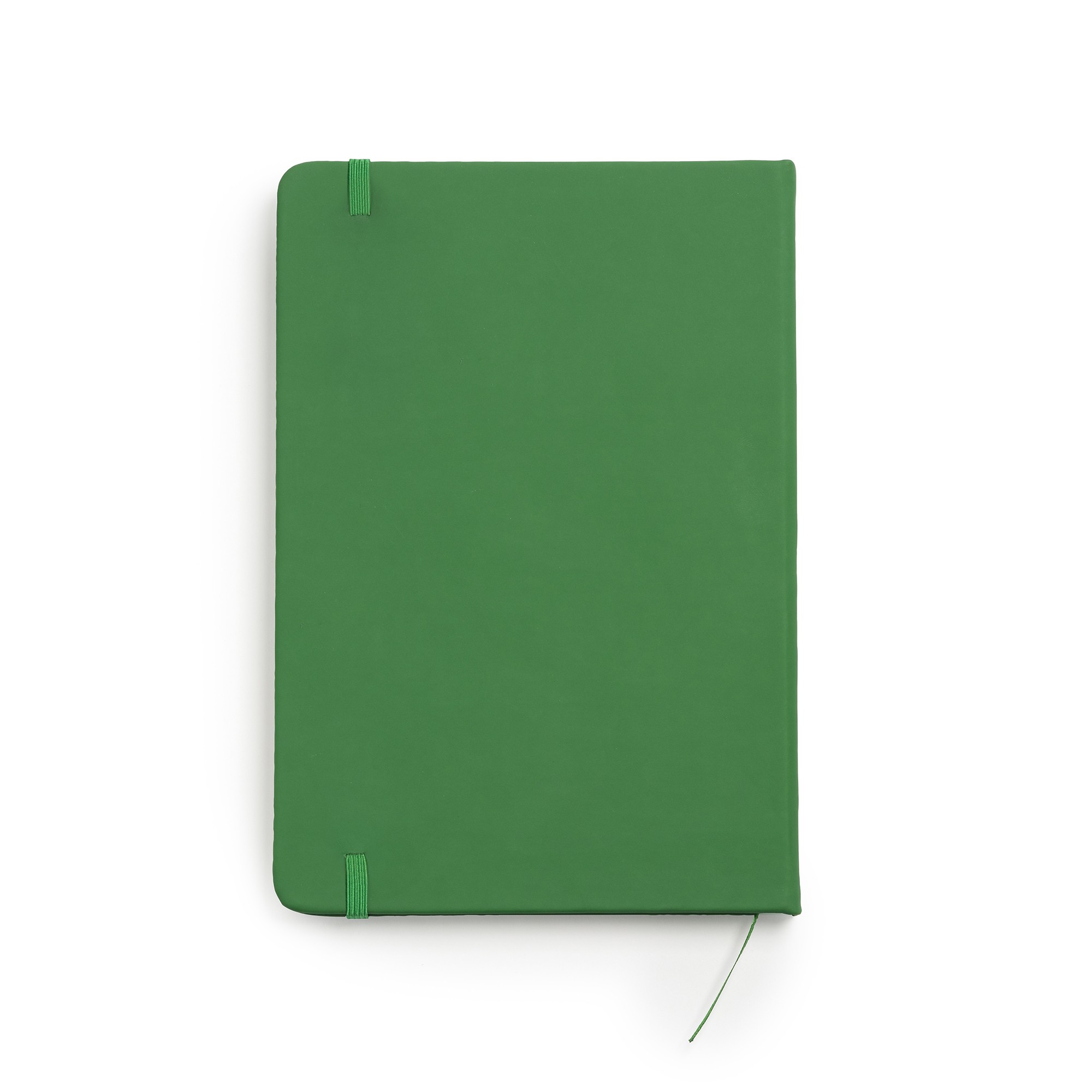 A5 notebook with imitation leather covers. Bookmark and elastic band. 100 lined sheets.