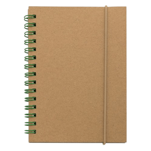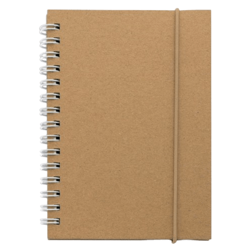 A6 Recycled Kraft Recycled Paper Notebook with Natural Elastic and Coloured Binder.