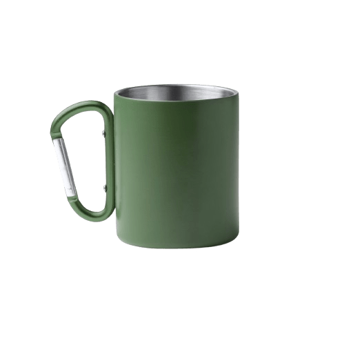 Recycled Stainless Steel Drinking Mug with Carabiner.