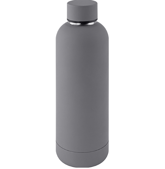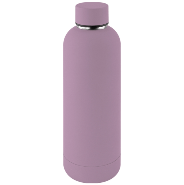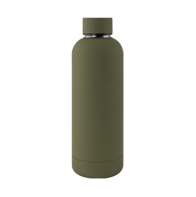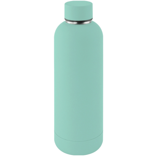 Promotional Water Bottle that can be branded with your company logo, great for eco friendly promotional product giveaways! This double wall stainless steel water bottle with rubber finish comes in a range of different colours to suit your company branding and is available in 500ml size.