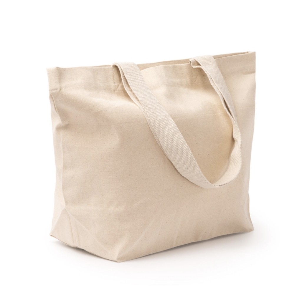 Great for screen printing, the premium natural recycled cotton tote bag can be printed with your logo on either side.