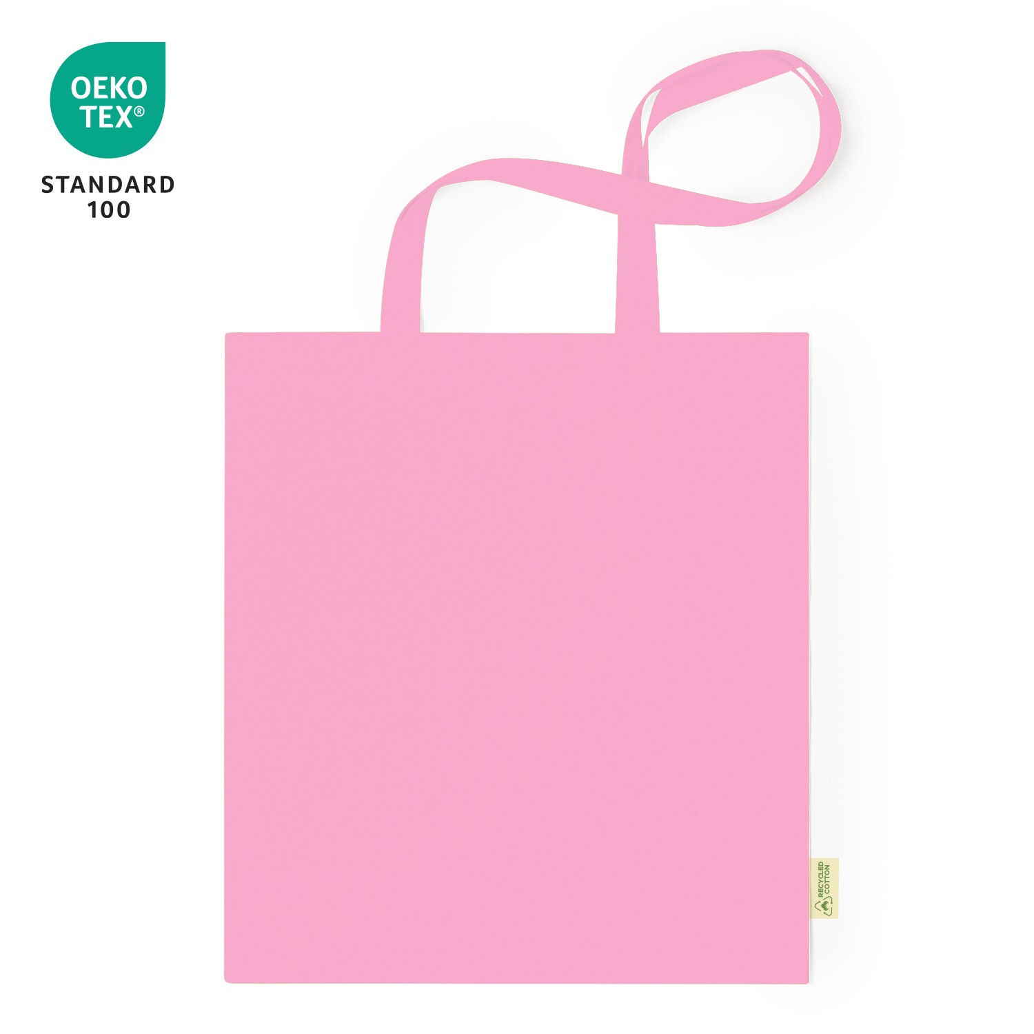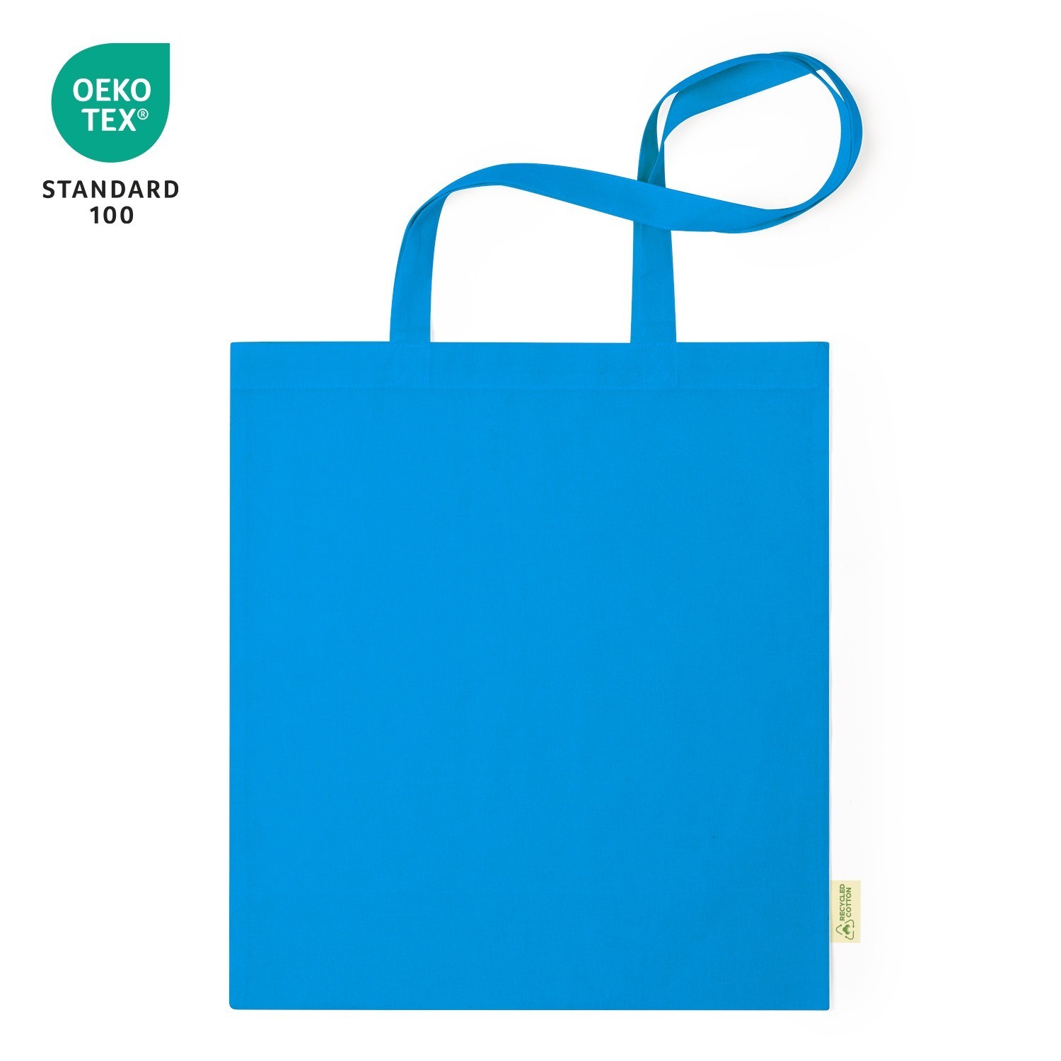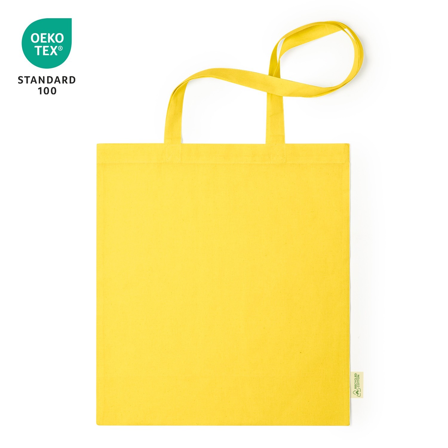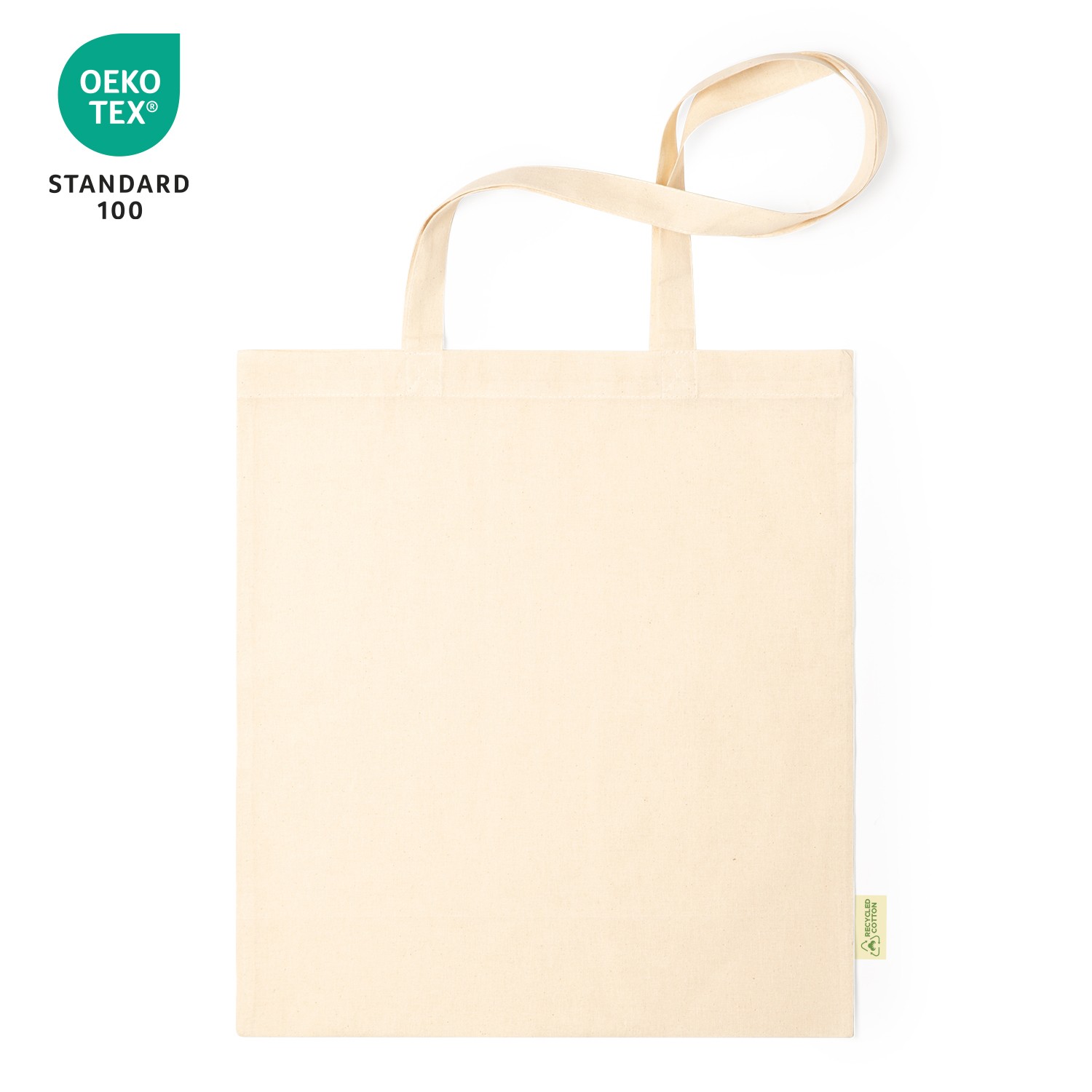 Great for screen printing, the natural or dyed eco recycled cotton promotional tote bag can be printed with your logo.